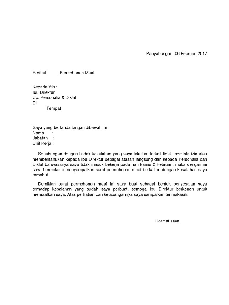 Contoh Surat Permohonan Maaf Kepada Atasan Kerja Lihat Letter Website